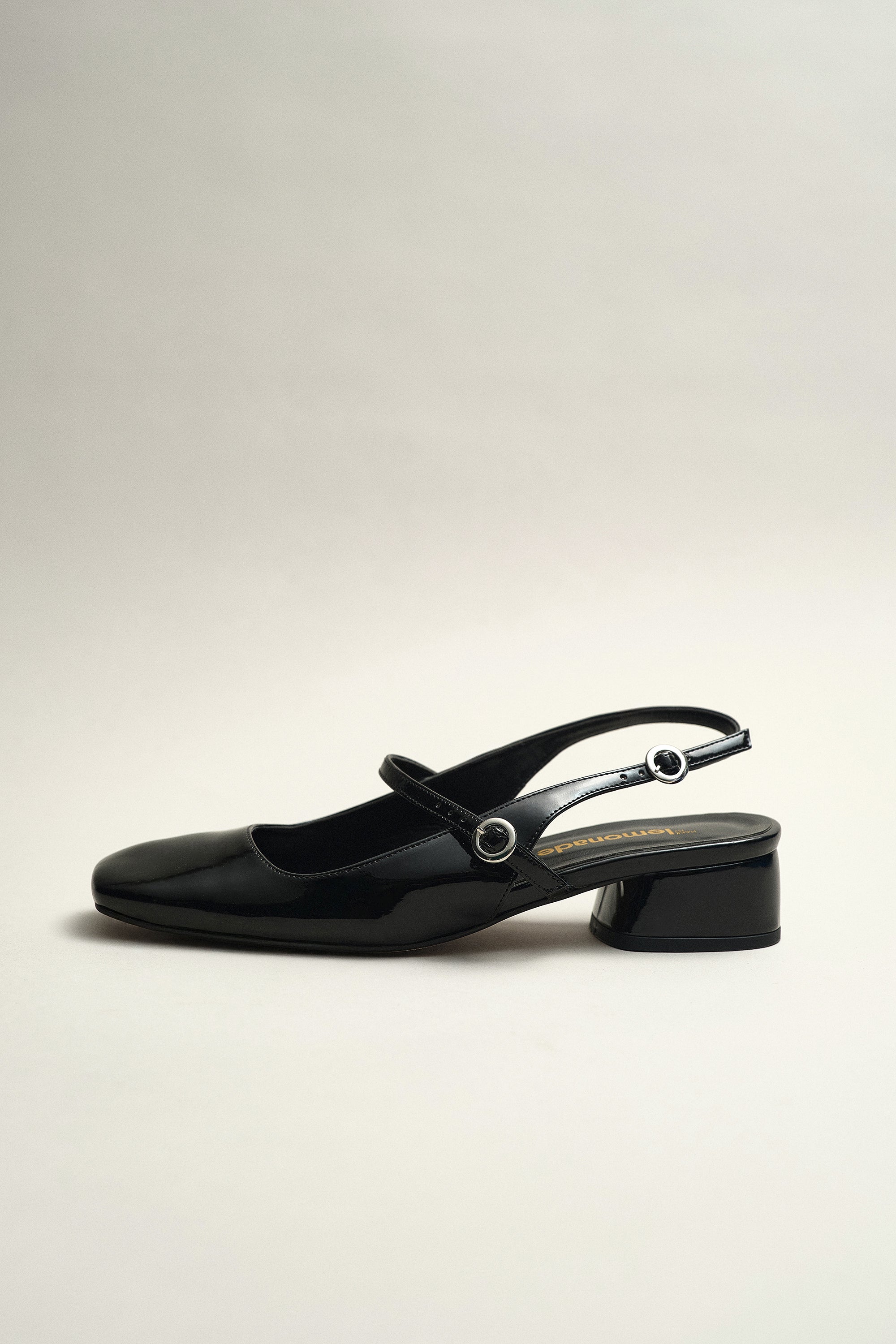Polly in black is the patent sandal that goes with absolutely everything.