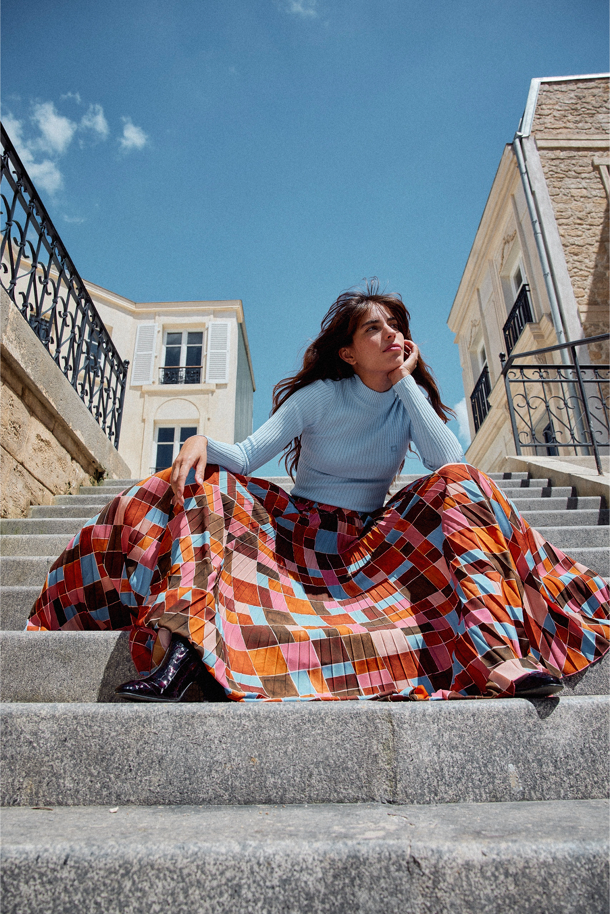 • Plissé “soleil” pour une silhouette fluide et aérienne