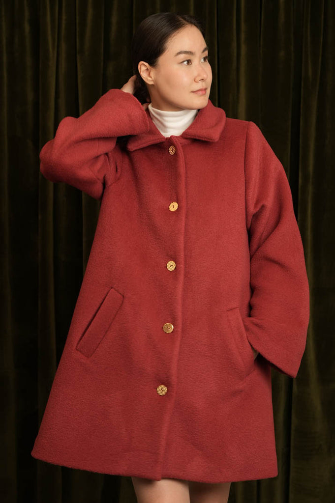 Ce patron comprend des valeurs de couture. Elles sont de 1cm sauf indications contraires. Nous vous conseillons de choisir une matière facile à travailler. Vous pouvez prendre une laine bouillie type loden ou une laine mélangée plate, un velours ras ou une gabardine épaisse. Selon votre budget, prenez un mélange de laines ou une minorité de laine avec une majorité d’acrylique ou de polyester.