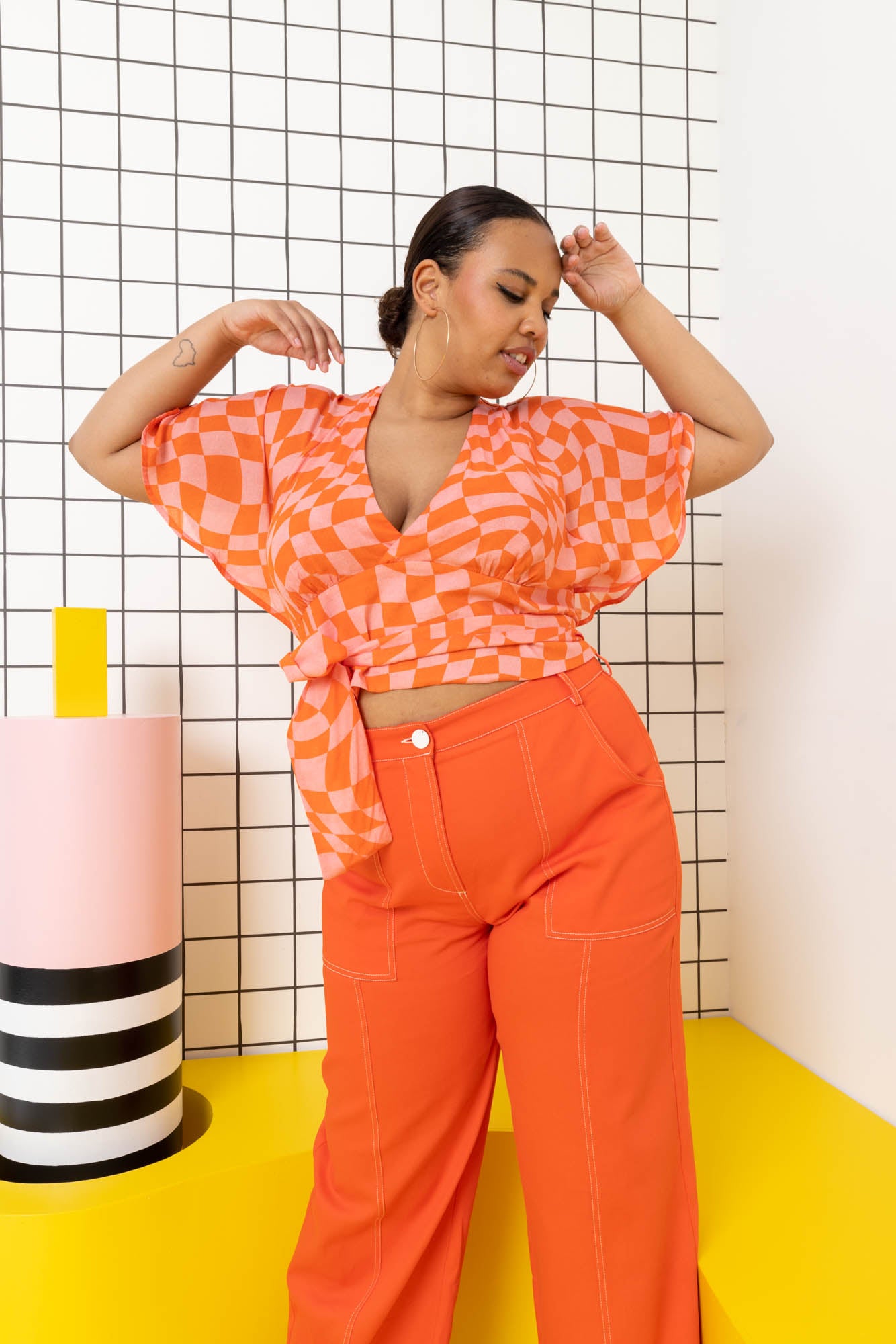 LE top tout léger, à croiser sur le devant aussi bien pour une soirée qu’une sortie en bord de mer. Son imprimé sunset inspiré du mouvement Memphis prolonge vos plus beaux souvenirs d’été en beauté.