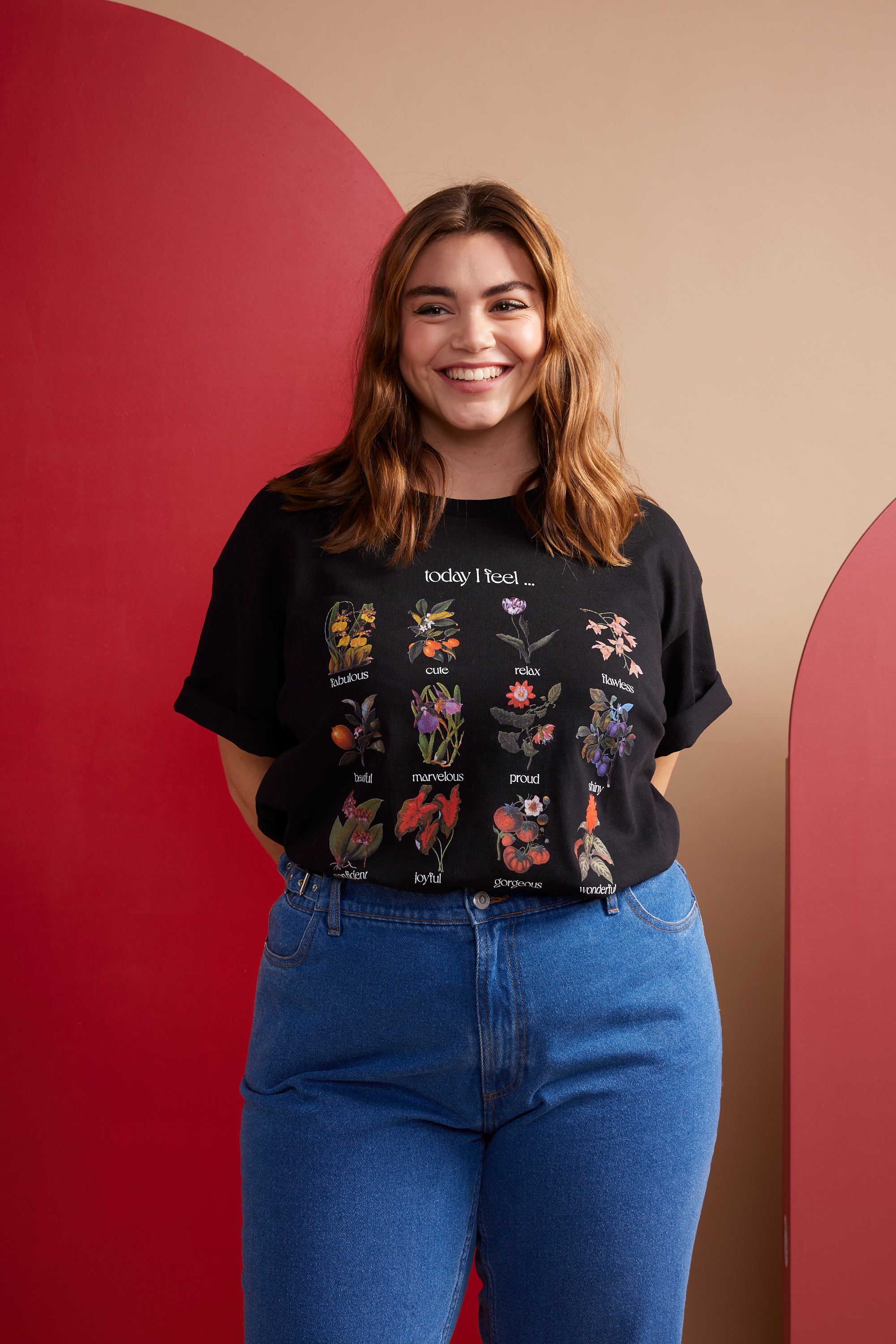 Tee-shirt forme ample, manches courtes. Longueur sous les hanches. Sérigraphie placée sur le devant.